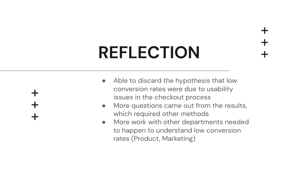 Conducted usability testing to validate whether usability issues during checkout were causing low conversion rates.