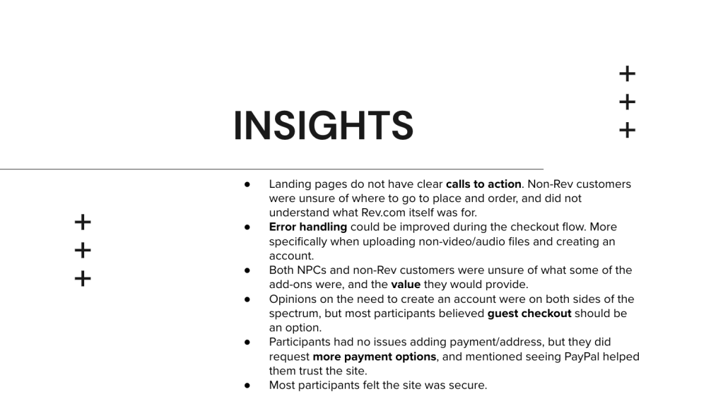 While usability issues during checkout were not found to be the reason for low conversion rates (this was validated through analytics after updates were made), some insights pointed to other possible reasons, such as the content on the landing pages.